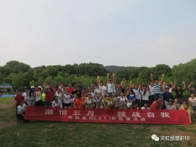 激情五月,挑戰(zhàn)自我,5月14日,天虹彩印公司組織員工進(jìn)行了團(tuán)建拓展活動(dòng)?;顒?dòng)在風(fēng)景秀麗的九真山風(fēng)景區(qū)拉開(kāi)序幕,在教練的帶領(lǐng)下,所有團(tuán)隊(duì)成員開(kāi)展了破冰分組、動(dòng)感擊球、團(tuán)隊(duì)圣塔、動(dòng)力圈繩四個(gè)拓展項(xiàng)目。